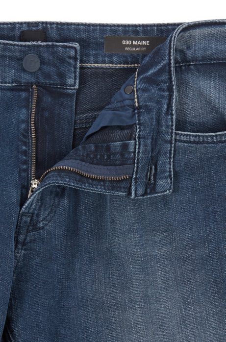 Men S Designer Jeans Straight Fit Dark Blue Faded