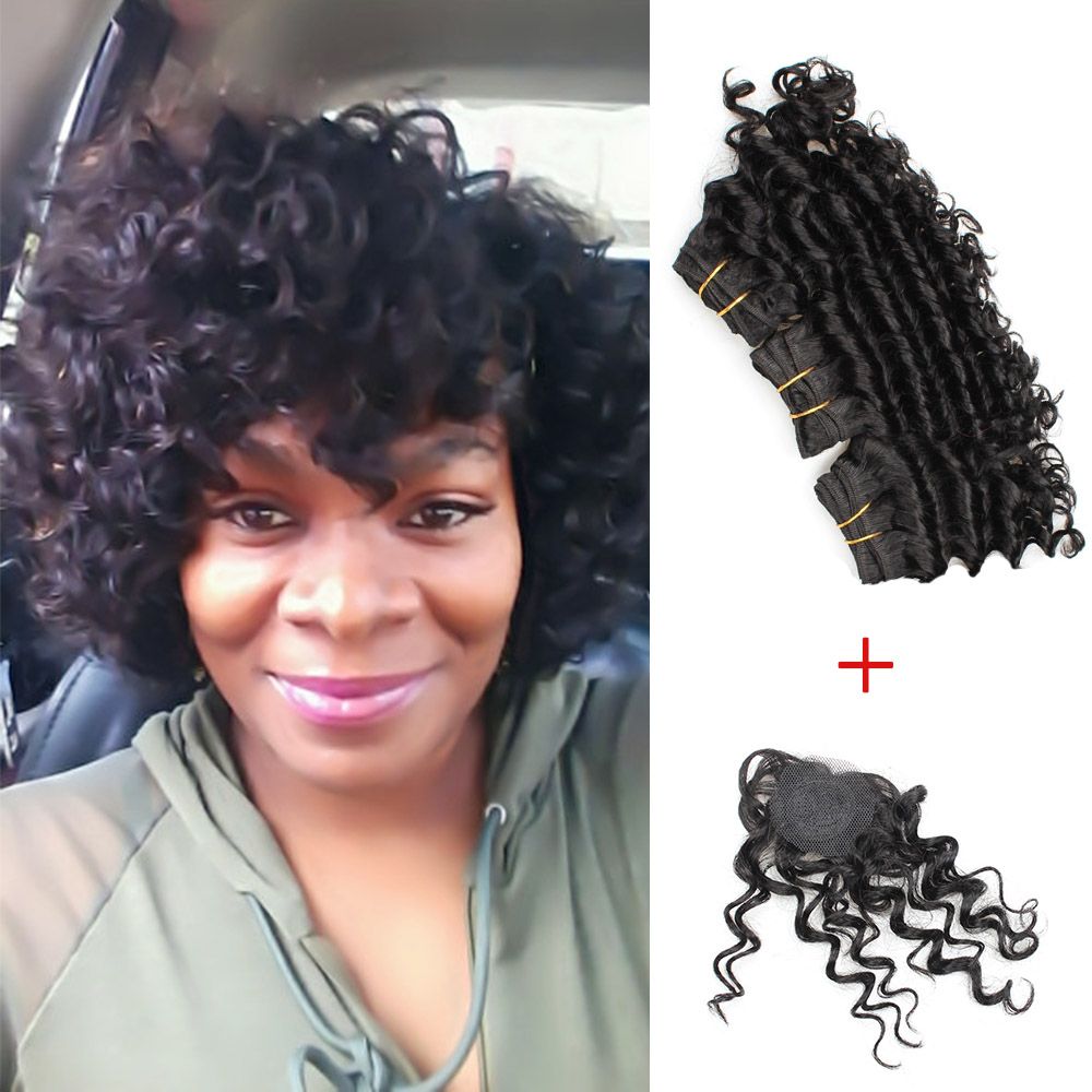 8a Brazilian Deep Wave With Closure Short 8 Inch Unprocessed Virgin Human Hair Bundles Deep Culry 4 Bundles With Three Part Lace Closure Full Head